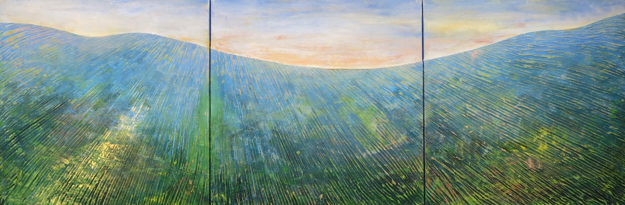 Obraz wykonany na płótnie w technice olej plus technika własna. Pole posiada grubą wyraźną fakturę.