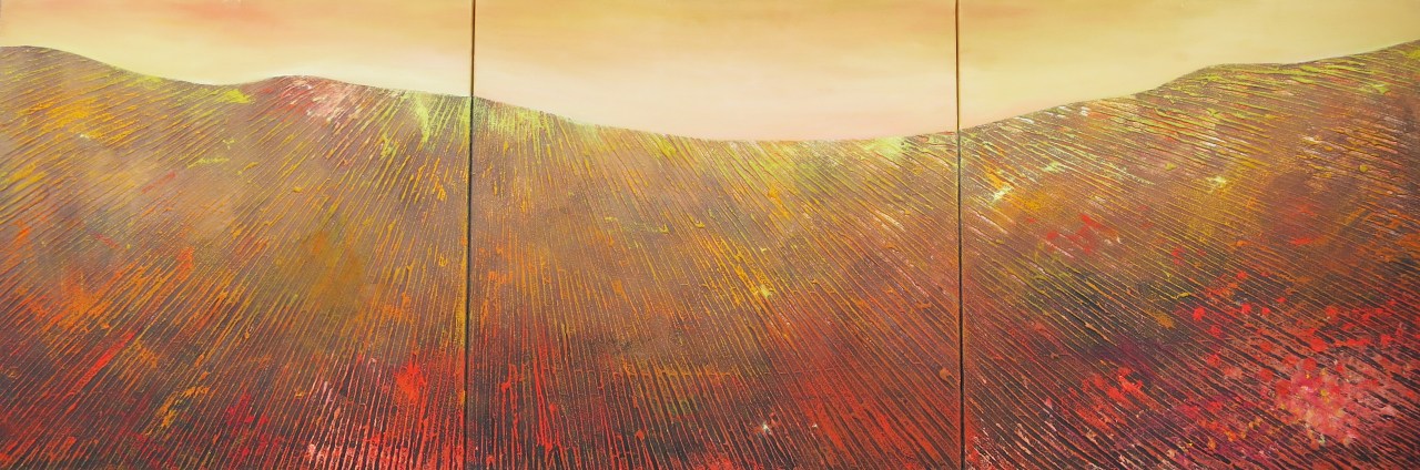 Obraz wykonany na płótnie w technice olej plus technika własna. Pole posiada grubą wyraźną fakturę.