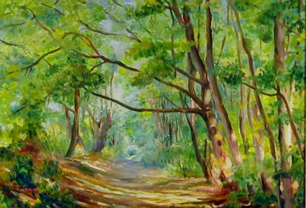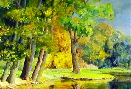Pejzaż z pochyłymi drzewami